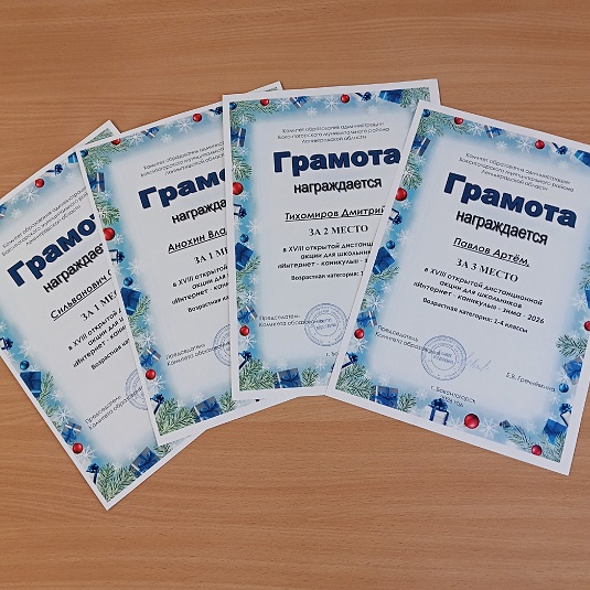 Подведены итоги XVIII открытой дистанционной акции для школьников «Интернет – каникулы» зима 2026! В открытой дистанционной акции приняли участие 7 обучающихся из 4 образовательных организаций Бокситогорского района: - муниципального бюджетного общеобразовательного учреждения «Бокситогорская основная общеобразовательная школа №1»; - муниципального бюджетного общеобразовательного учреждения «Бокситогорская средняя общеобразовательная школа №3»; - муниципального бюджетного общеобразовательного учреждения «Средняя общеобразовательная школа № 3» города Пикалёво; - муниципального бюджетного общеобразовательного учреждения «Бокситогорская средняя общеобразовательная школа №2». По решению жюри победителями и призерами XVIII открытой дистанционной акции для школьников «Интернет – каникулы» зима 2026» стали следующие обучающиеся и воспитанники: Викторина «Всё о Марке Твене», посвященная 190-летию со дня рождения Марка Твена. Возрастная категория «1 – 4 классы»: - 1 место – Сильванович Семён, муниципального бюджетного общеобразовательного учреждения «Средняя общеобразовательная школа № 3» города Пикалёво, - 1 место – Анохин Владислав, муниципального бюджетного общеобразовательного учреждения «Средняя общеобразовательная школа № 3» города Пикалёво, - 2 место – Тихомиров Дмитрий, муниципального бюджетного общеобразовательного учреждения «Бокситогорская средняя общеобразовательная школа №2», - 3 место – Павлов Артём, муниципального бюджетного общеобразовательного учреждения «Бокситогорская средняя общеобразовательная школа №3».
