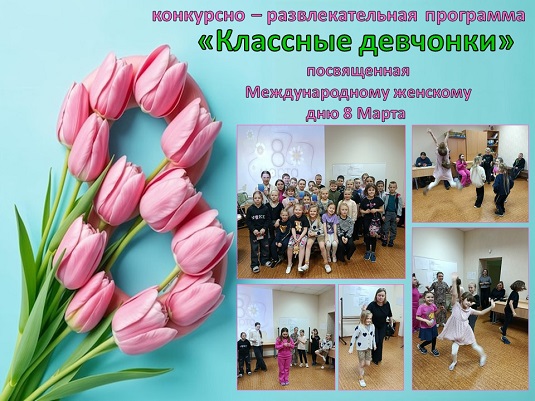 04.03.2026, в преддверии Международного женского дня 8 марта для обучающихся МБОУ ДО «Бокситогорский центр дополнительного образования» прошла конкурсно-развлекательная программа «Классные девчонки». Девочкам из различных объединений предстояло пройти через череду увлекательных испытаний, чтобы доказать, что они не только преуспевают в творчестве, но и являются настоящими звёздами сцены. Конкурсная программа была насыщенной и разнообразной: девочки блистали в самопрезентациях, демонстрировали свои творческие и интеллектуальные способности, соревновались в умении выходить из нестандартных ситуаций, хореографическом и актерском мастерстве. Мероприятие прошло в позитивной обстановке и привнесло в настроение детей и взрослых атмосферу весенней радости и предпраздничного настроения.